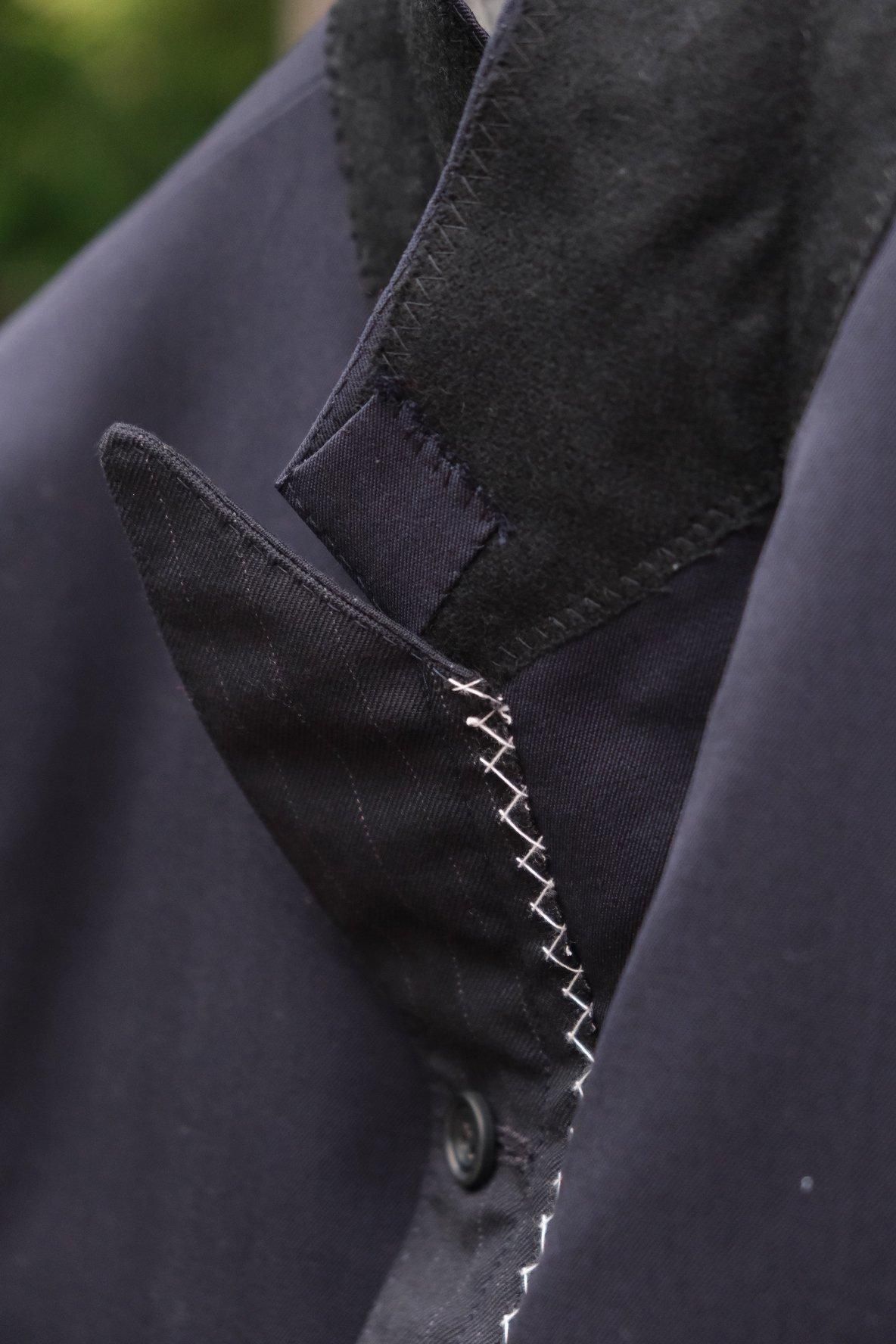完成後のジャケットの袖を大胆に切断し"未完成なもの"だと錯覚さえもさせるこのテーラードベストは、よく見ると前身頃が左右非対称。まず左側のノッチドラペルにピークドがくっついていて、右側のフラップポケットにも生地が2種類貼り合わされている。ヘンテコな1着に見えてよく見ると細部まで拘りと違和感が張り巡らされている。まるで1枚の葉の中の毛細血管のようだ。未完成なものに見えて、何ひとつ欠けてはいけない大事な要素が詰まった"完成された"テーラードベストだと思う。この秋、この1着でレイヤードの楽しさを改めて見出せる予感がする。