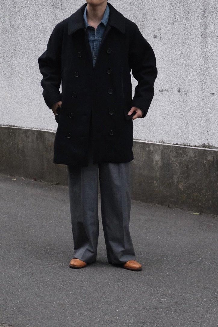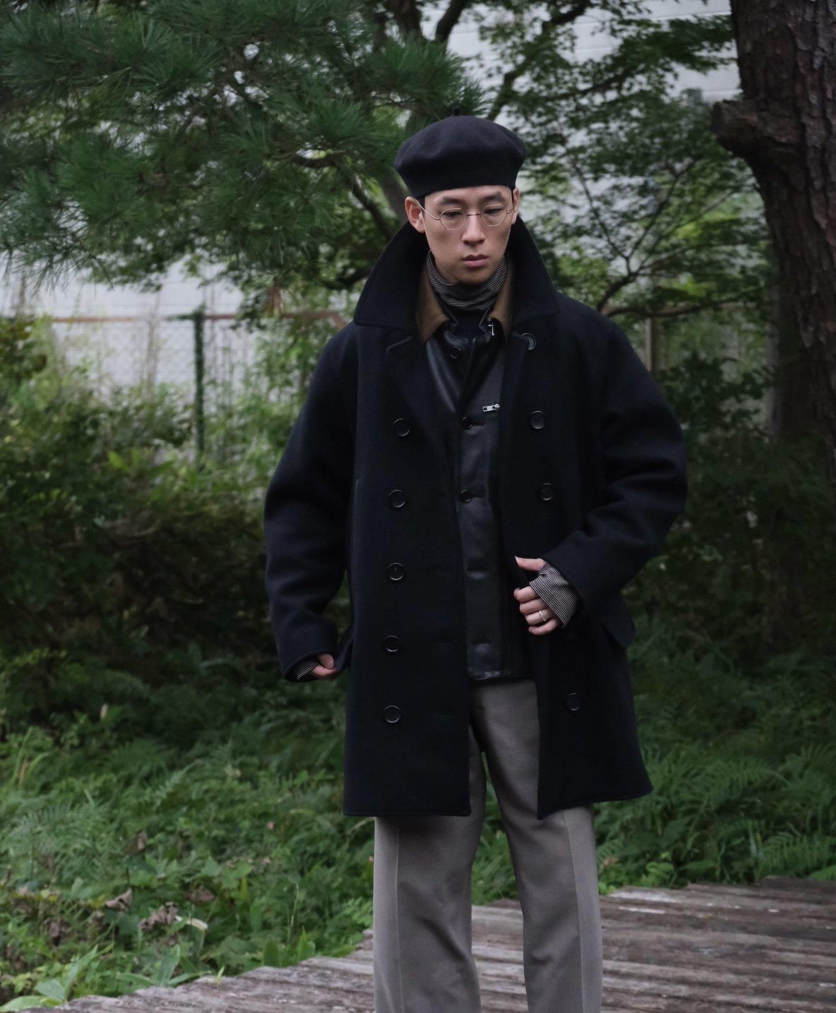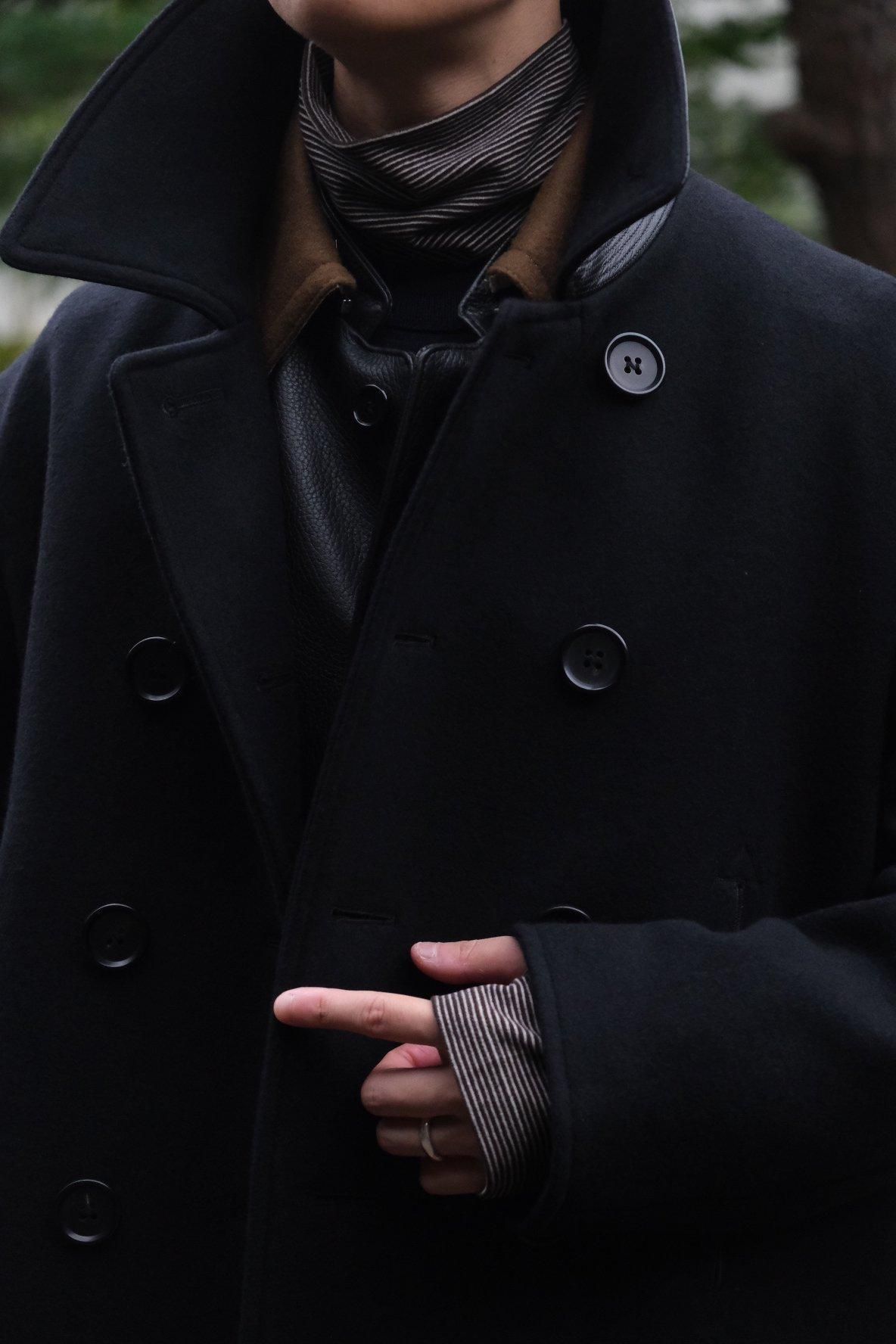 僕の知っているPコートではない。10代後半に出会ったアメリカ製のゴリゴリの10ボタンのソレと、どこか出立ちや雰囲気はそっくりなのに生地が違う。堅牢さと柔和性が共存している。芯がしっかりしているのにどこか柔らかい、そんな見た目から想像できない着心地と、手作業によって配置されたレザーが光る1着。昨年からアップデートが加わり、今後右に出るものがない程のクオリティに、是非触れてみてほしい。