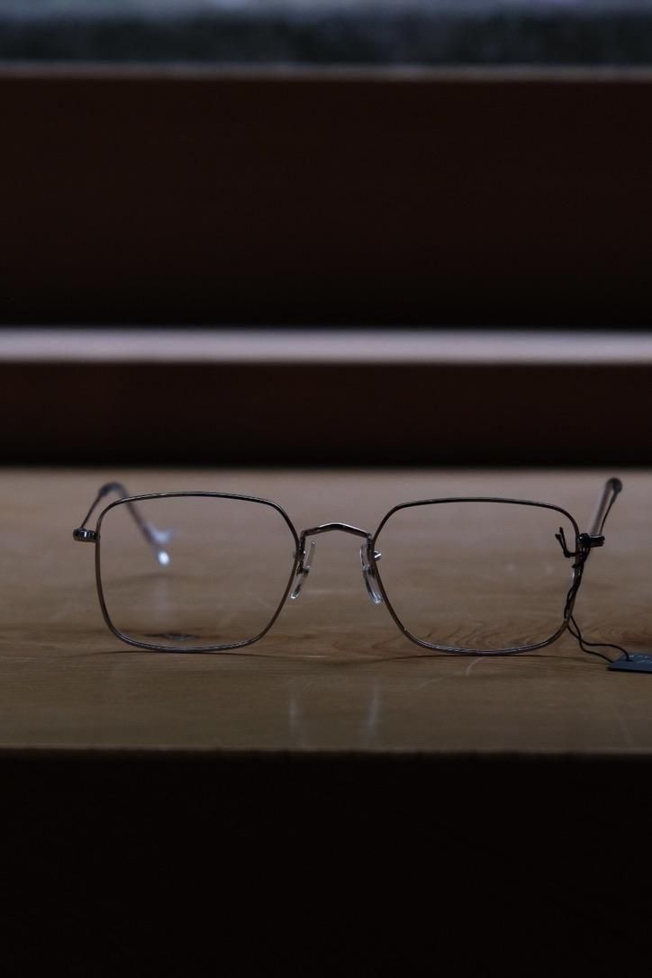 ロンドンで90年以上の歴史ある、アルガワークス社製造のスクエアフレーム。セル巻きや14金張りが有名だが、こちらはホワイトゴールド張りでメガネ初心者にもかけていただきやすい1本かと思う。シンプルなアイウェアだからこそ出せる気品の良さが伺える。こちらも装填レンズはクリア一択でしょう。