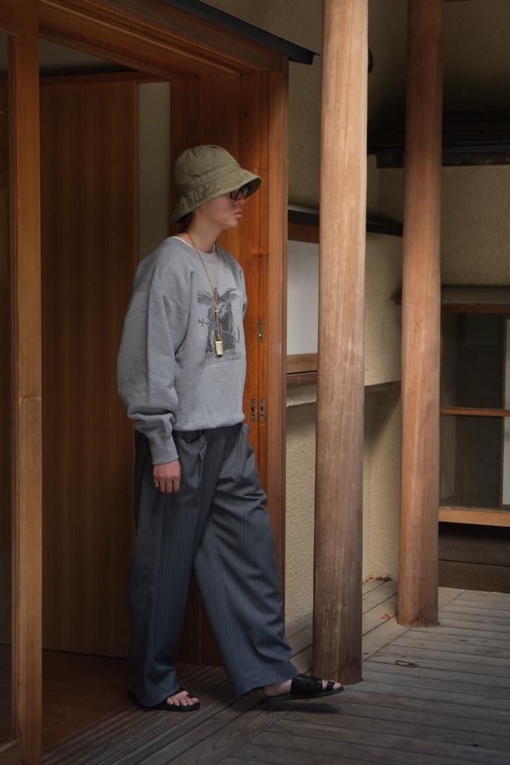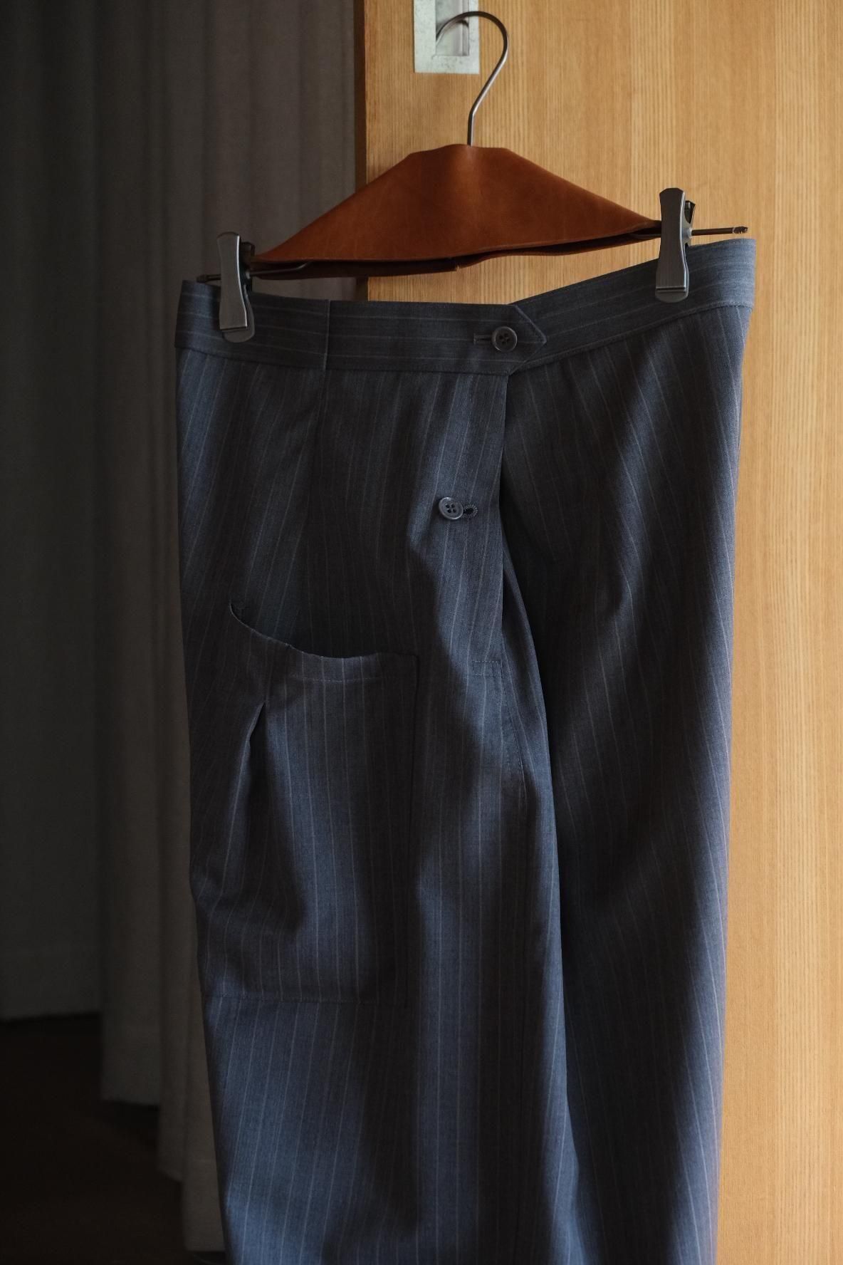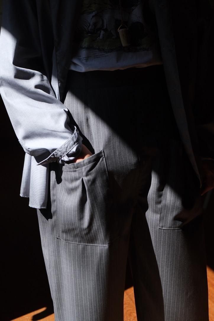 凝り固まった脳みそを1本ずつ分解して再構築していく、その面白さに気づかされるプロダクトだ。『〜しなければならない』、『〜あるべきだ』みたいなステレオタイプから脱却し、360°の色々な角度から眺めて堀切さんの仕掛けたディテールに気づいてほしい。糊が付いてバリっとしたインディゴデニムは洗いを繰り返せば、その時々でパンツの動きの違いを楽しめるだろう。またドーメルのドレープ効くしなやかなウールパンツは、ウエスト以外ほとんど肌に当たらず9月からスタンバイOKだ。上品の中にもCLASSらしい歪さはしっかりと感じる。どちらのパンツを選ぶにせよ、『洋服はこうあってもいいんだ』という新しい発見と、凝り固まった思考から自らの新しいコーディネートを見つける楽しさを感じてもらえると思う。