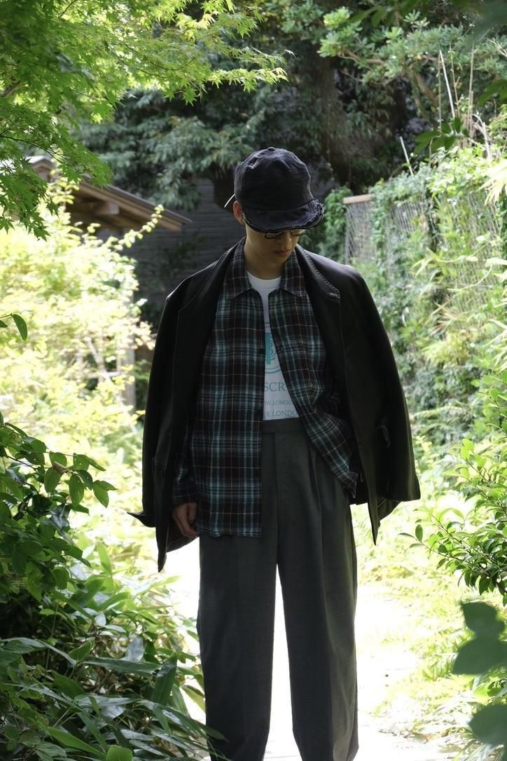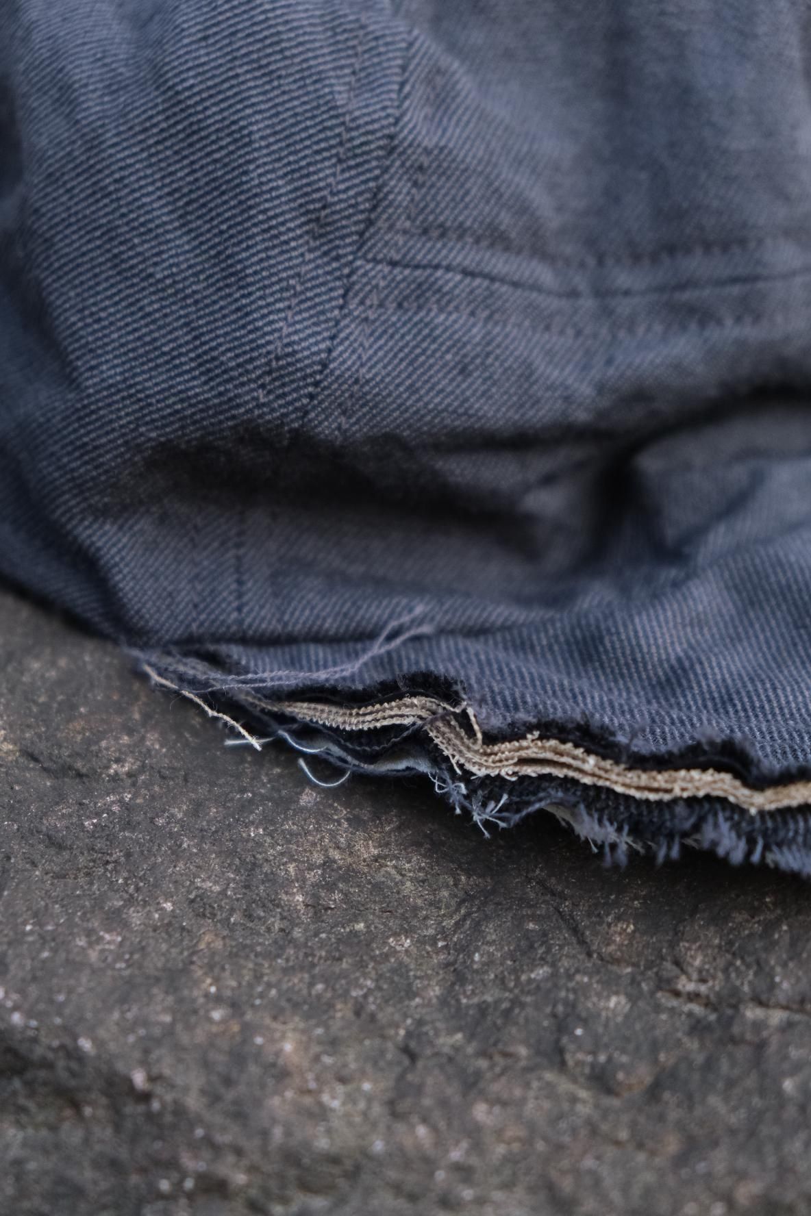 Ordinaryは平凡なという意。普遍的でありながらも普通ではない、ハナレのお洋服たちと非常に相性の良い意味合いに心惹かれる。縮絨ウールリネンの粗野な雰囲気を感じつつも、断ち切りのバイザーエッジや縮絨の不均一な歪みが丁寧な手作業であると見てとれ、ギャップが各所に散りばめられている。オリジナルの縮絨生地と見た目の雰囲気、バイザーエッジに見える副材はひとつひとつの要素が点でバラバラに見えるも完全に調和が取れた、他には替が効かないファッションアイテムだ。普遍という表題を裏切るextraordinaryさがありとあらゆる洋服に溶け込んでゆく。