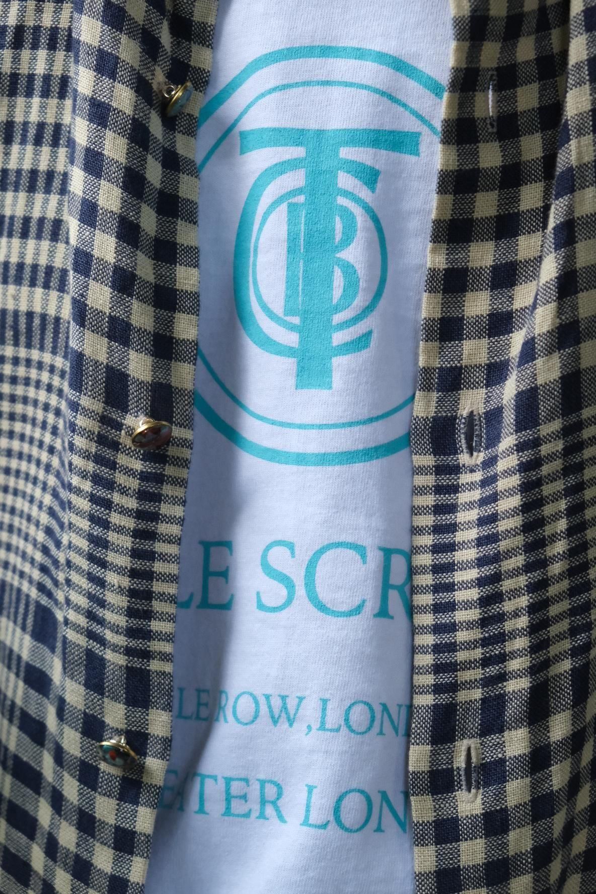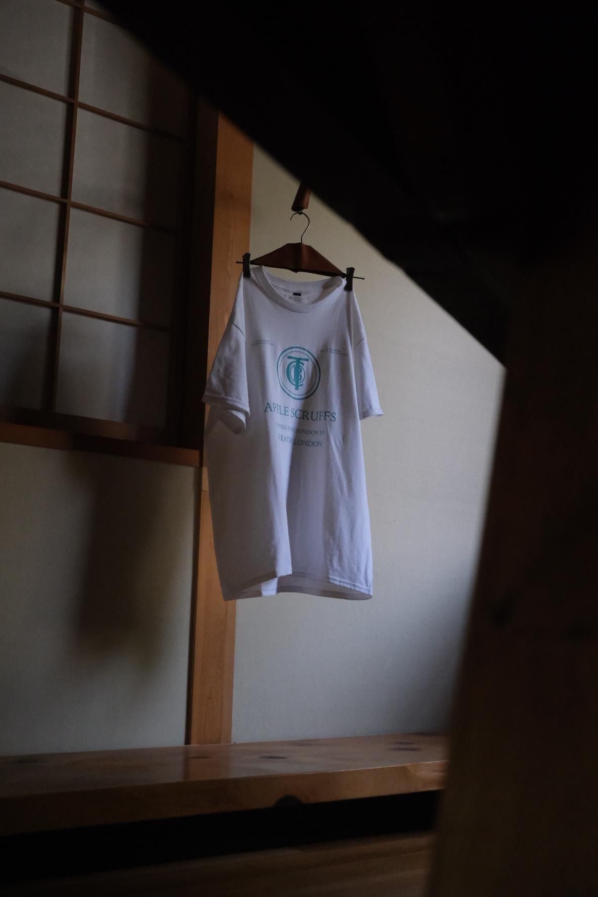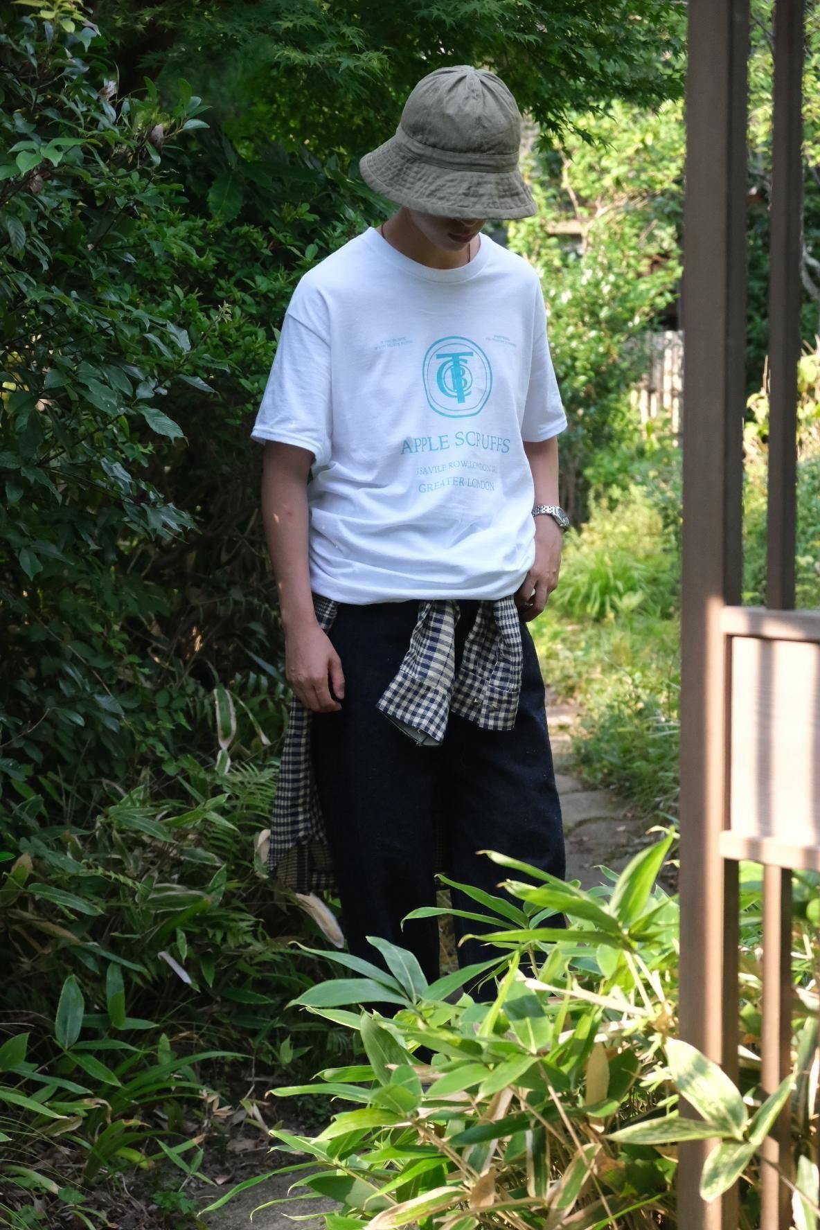 これからのTシャツの主戦場はシャツやジャケットの下だが、クローゼットにはまだまだバリエーションは欲しいところ。今回特別にハナレに入れていただいた、"APPLE SCRUFES"は音楽や洋画などのカルチャーに造詣の深い赤羽さんらしいデザインだ。中肉のコットンにサイドシームのない丸胴という親しみのあるThe"USA"なボディでレトロ感も嬉しい。引き続き暑い夏も、その先の季節にも他にはない緩急差であそんでほしい。