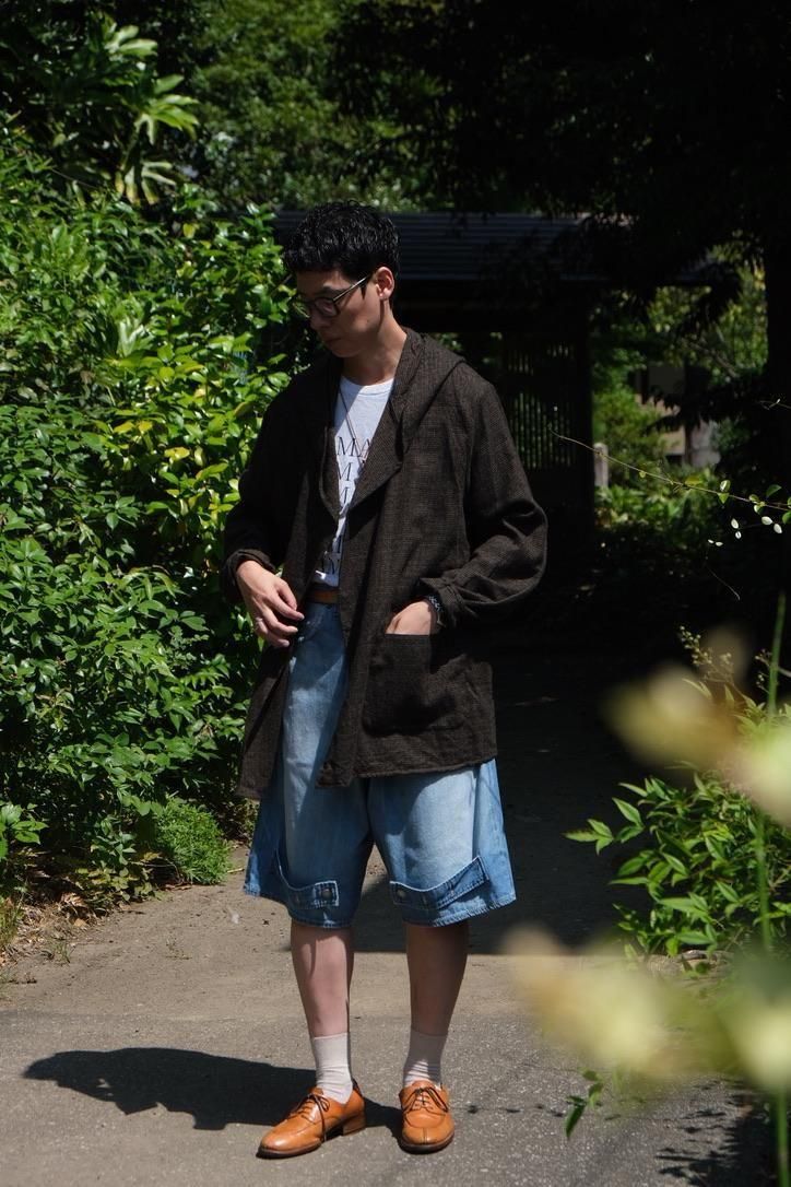 ただ羽織るだけ、このシンプルかつヒト固有の動作に製作趣旨を詰めた1着。これは楽チンでいてただただかっこいい。性別、年齢、肌の色を問わずに着用できることをコンセプトに、ボタンも何もない一切の付属品を削ぎ落としたミニマルなシャツだが、裏側の縫製はすべてパイピング仕様で"ただ羽織る"だけなら汚れたら裏返しに着てもいいと思わせるくらいの凝ったディテールをつけている。肩ひじはらずに日常で着れて、適度なメンテナンスさえすればずっと着れる1着。自身と洋服の距離を確認し合いながら、大切に永く着続けることが本当の贅沢なのだとこの洋服を見てそう思いました。
