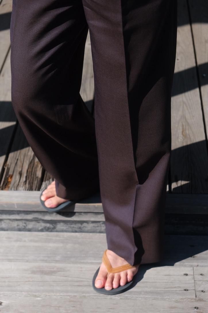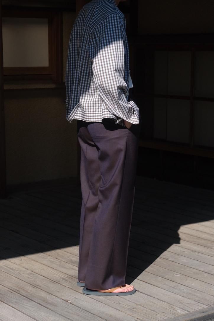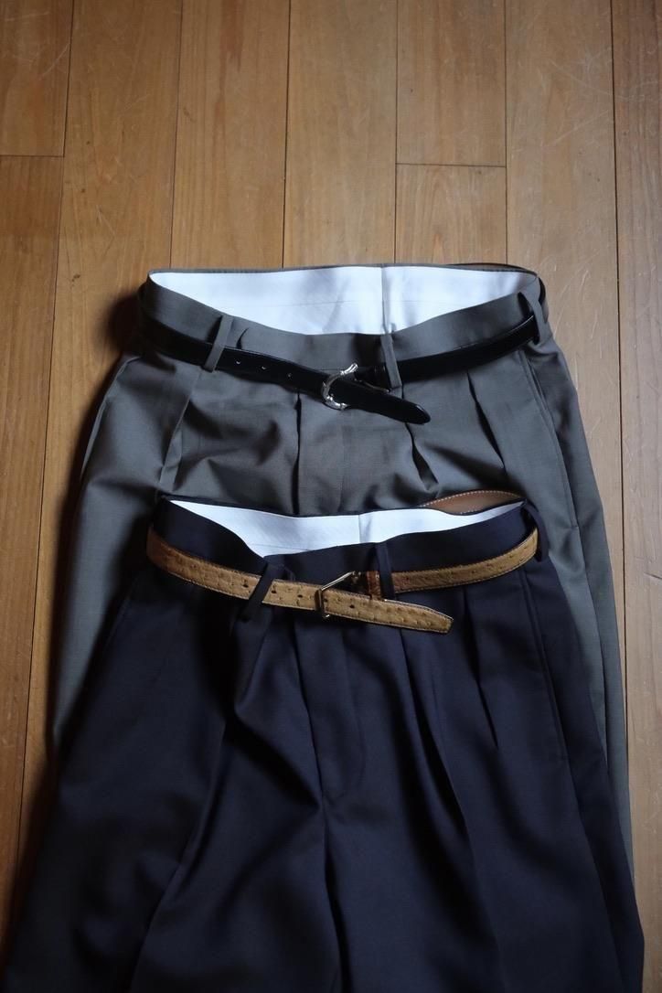 絶妙なサイズバランスに調整されたニュー・永遠。従来のものとジェフリーの中間くらいで"今、求めていた"を具現化している。裾の絞りは控えめにし合わせるシューズの汎用性を考えられてあるカタチ。そこにとてつもなく深く魅力的な宇宙の神秘を感じるNavyとGray x Beige x ほんのりKhakiを感じる多重層なGreigeを乗せ、シワになりにくいウールモヘア生地で構築。程よいハリ感と落ち感を待ち合わせた、これからのMAATEEを担う1本になりそうな完成度の高いスラックスである。