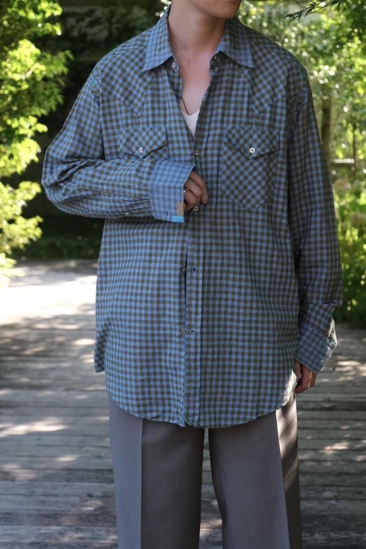 グプタの狂気は時間と共にその強度と魅力を増していく。進化がすごい。暑さを凌ぐためのインドの伝統的な織生地に、MAATEEの"職人泣かせなハンドワーク"がこれでもかと乗った1枚。お得意のウエスタンデザインに、インド文化における"聖なる手"とされる右手(右肩、右カフス)にお花の刺繍とパッチワークが施され、チェック柄の配色と敢えての異色糸のハンドステッチに脳が沼る。春夏グプタと違い裾のカットをドレス仕様にすることで、難なくタックインもできるだろう。グプタの魅力、その全てを感じ取るにはまだまだこれからも長旅となりそうだ。