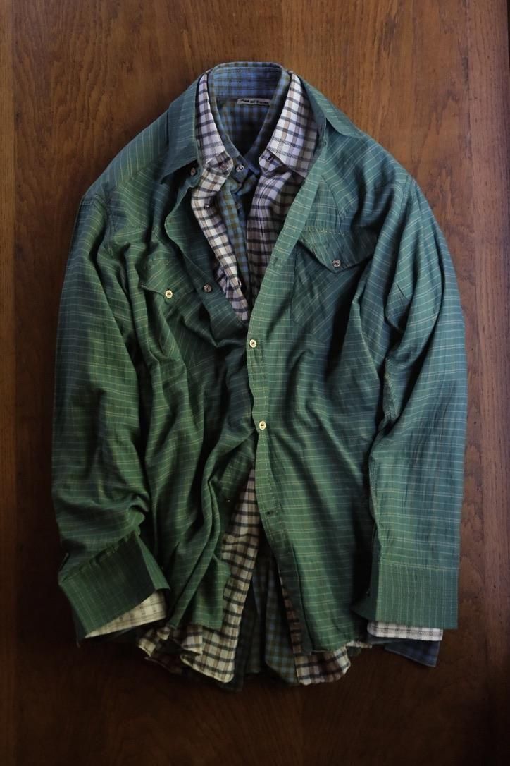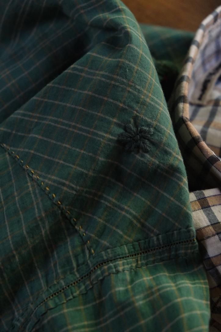 グプタの狂気は時間と共にその強度と魅力を増していく。進化がすごい。暑さを凌ぐためのインドの伝統的な織生地に、MAATEEの"職人泣かせなハンドワーク"がこれでもかと乗った1枚。お得意のウエスタンデザインに、インド文化における"聖なる手"とされる右手(右肩、右カフス)にお花の刺繍とパッチワークが施され、チェック柄の配色と敢えての異色糸のハンドステッチに脳が沼る。春夏グプタと違い裾のカットをドレス仕様にすることで、難なくタックインもできるだろう。グプタの魅力、その全てを感じ取るにはまだまだこれからも長旅となりそうだ。
