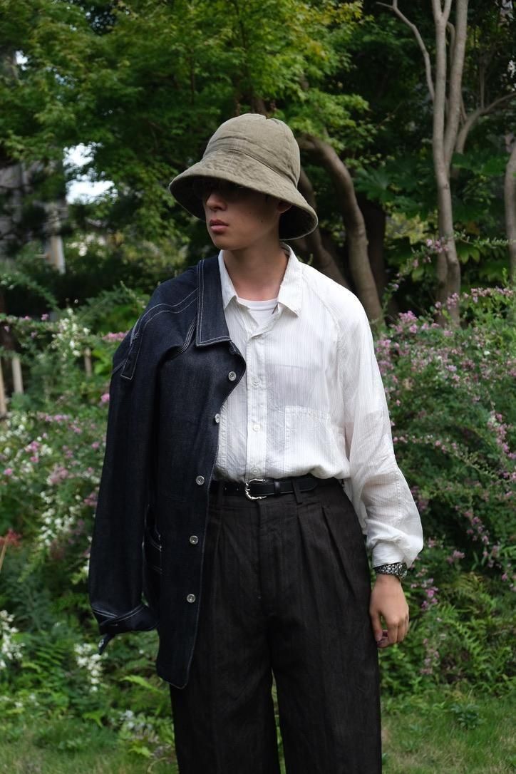探せば意外と見当たらないラグランスリーブシャツというプロダクトも、西川さんの手にかかれば、"こういうのは実にエンソウらしい"という認識に変わるから面白い。テーラードの裏地に使用されるキュプラを使うことで肌触りの良さを追求し、コットンやリネンとは異なる動きを助長する。やや下に位置する身頃のポケットと通常よりも大きな面積を取られたラグランスリーブが、同じシーズンに出る他のシャツとはまた一線を画した存在となる。秋冬は特にシャツが軸となるからこそ、肌触りや素材、重ねた時のスムーズさなど"着用した時の感覚"を大事にしたいと強く思う。インでもアウトでも間違いなく1軍の活躍を約束する。