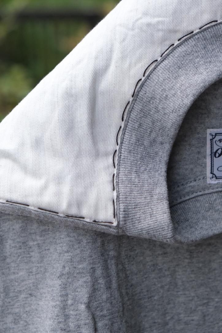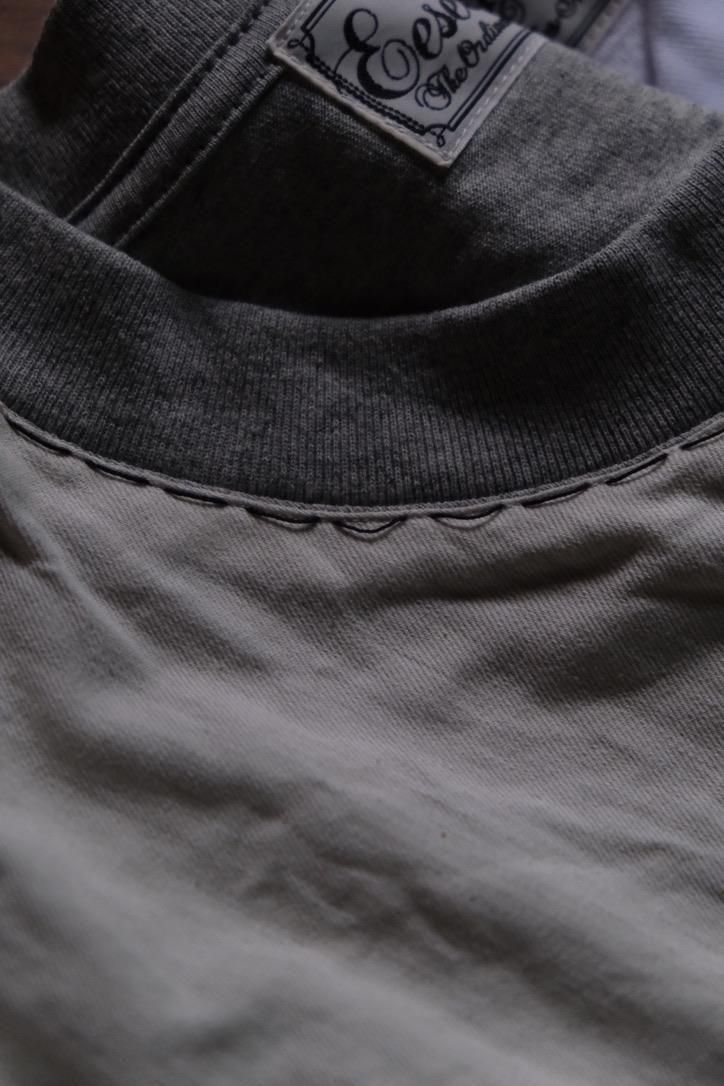 この発想は面白いと思った。これからの季節のリアルなスタイリングはシャツが軸にあって、インナーにカットソーやハイゲージのタートルなどを重ねていく。ジャケットの下に1枚で刺さるカットソーはデザインを求められるし、探すと意外と見つからなかった。天竺生地と杢感のあるシャツ生地を粗めのハンドステッチで貼り合わせた、何ともイイセットらしい1枚。ベーシックな中にも遊び心を効かせた、この時期に着たい他にはない主役級のデザイン。
