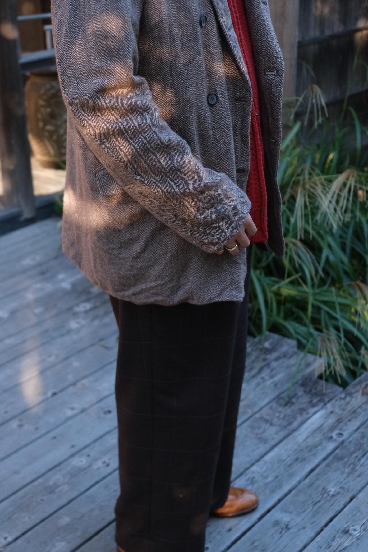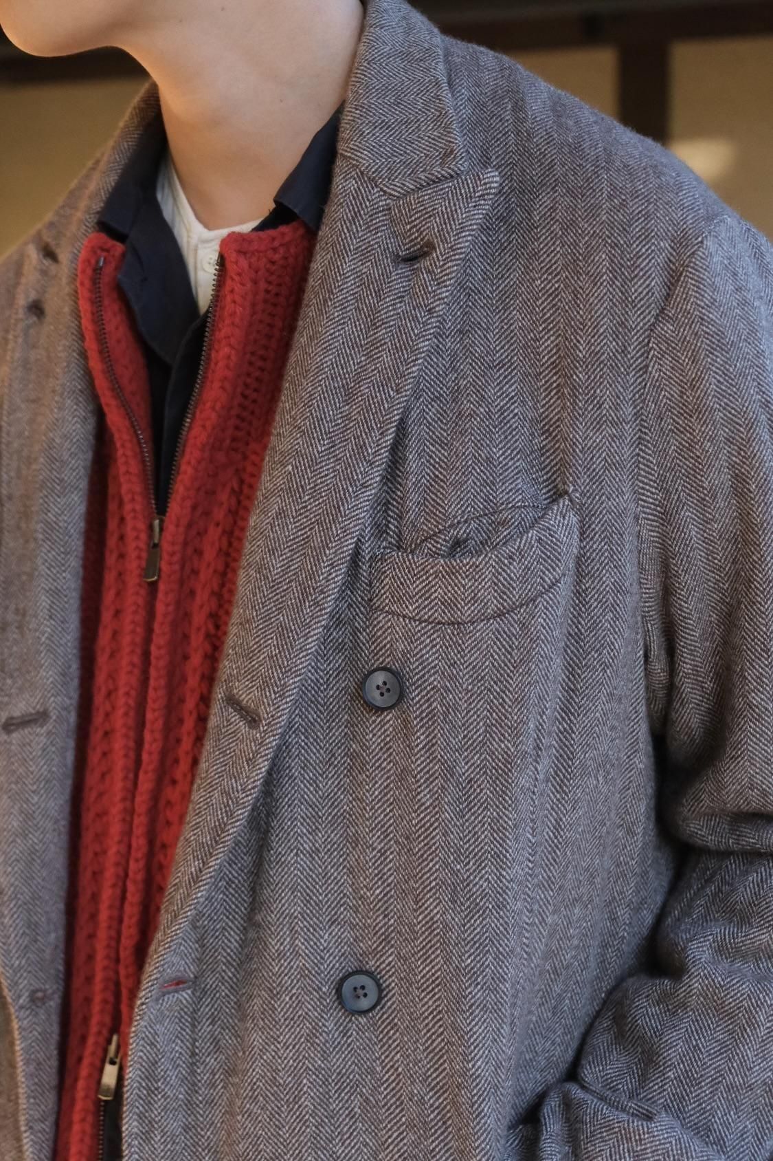 店頭にダブルのジャケットがずらっと並ぶと一段とドレスアップしていきたい圧巻な雰囲気になるところ、崩しに崩したアルチ感満載の、MAATEEのドレスラインには見られなかった様子で非常に奥ゆかしい。悔しいほどに写真ではお伝えできない柔らかさと軽さと温かさを兼ね備え、極上の素材にニンマリする。総裏シルクの無芯仕立て、最後に製品洗いを添えて。また、裾まわりぐるりと細かいギャザーを起こしながら縫い入れを行うことで、よりソフトで砕けた表情となり誰もが触れたことのない感覚となっている。カーディガンの延長線上におり、これから重ねていくシーズンでは間違いなく重宝されるシロモノ。スウェットやニットベスト、デニムやスニーカーなど着崩せるものでどんどん崩していこう。