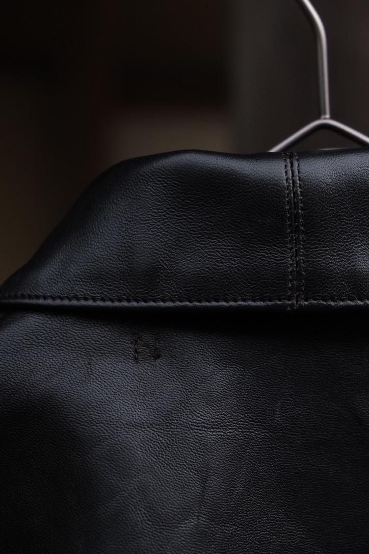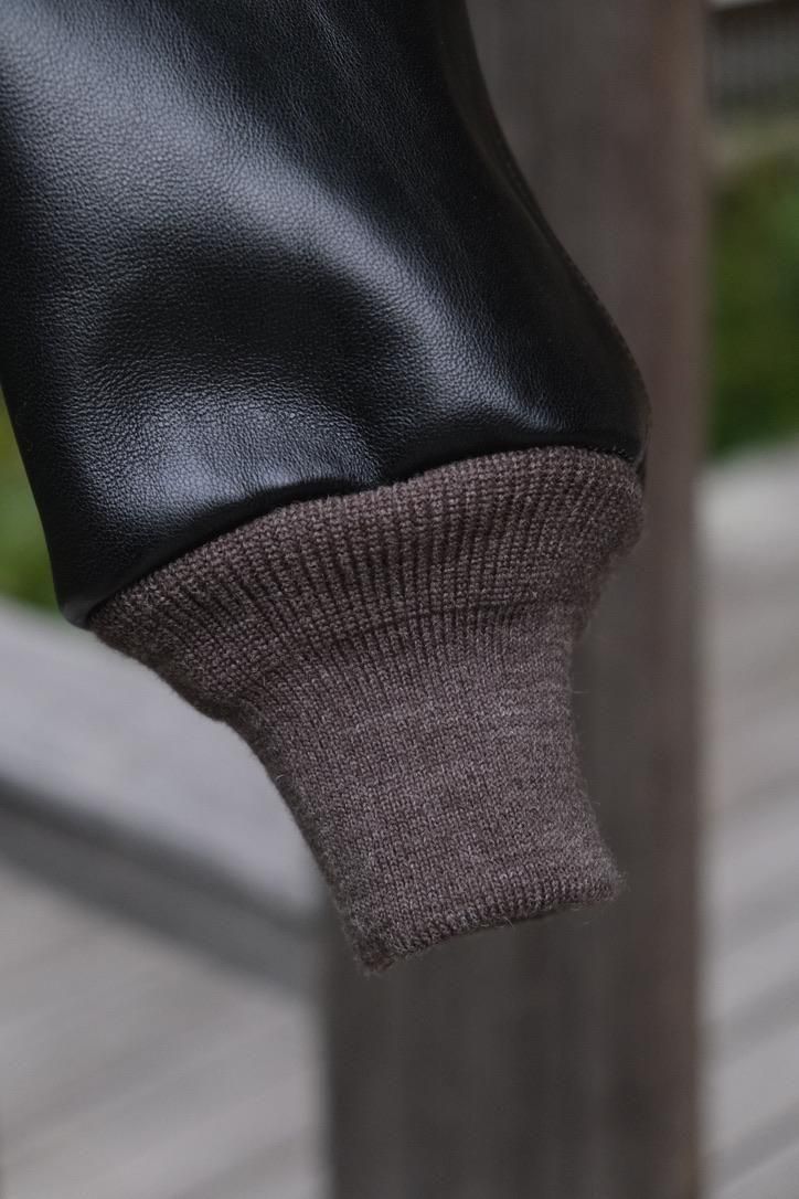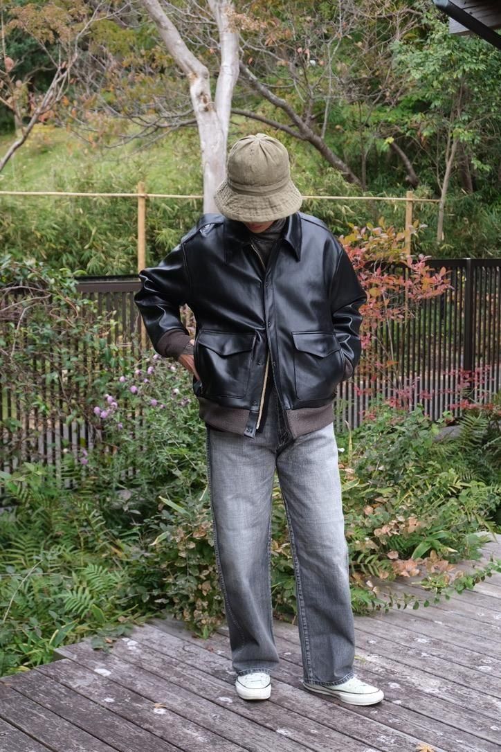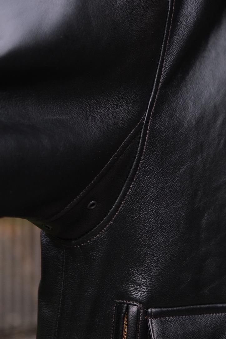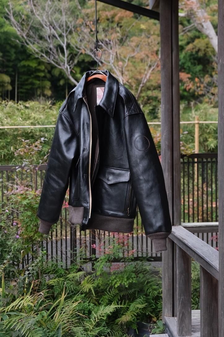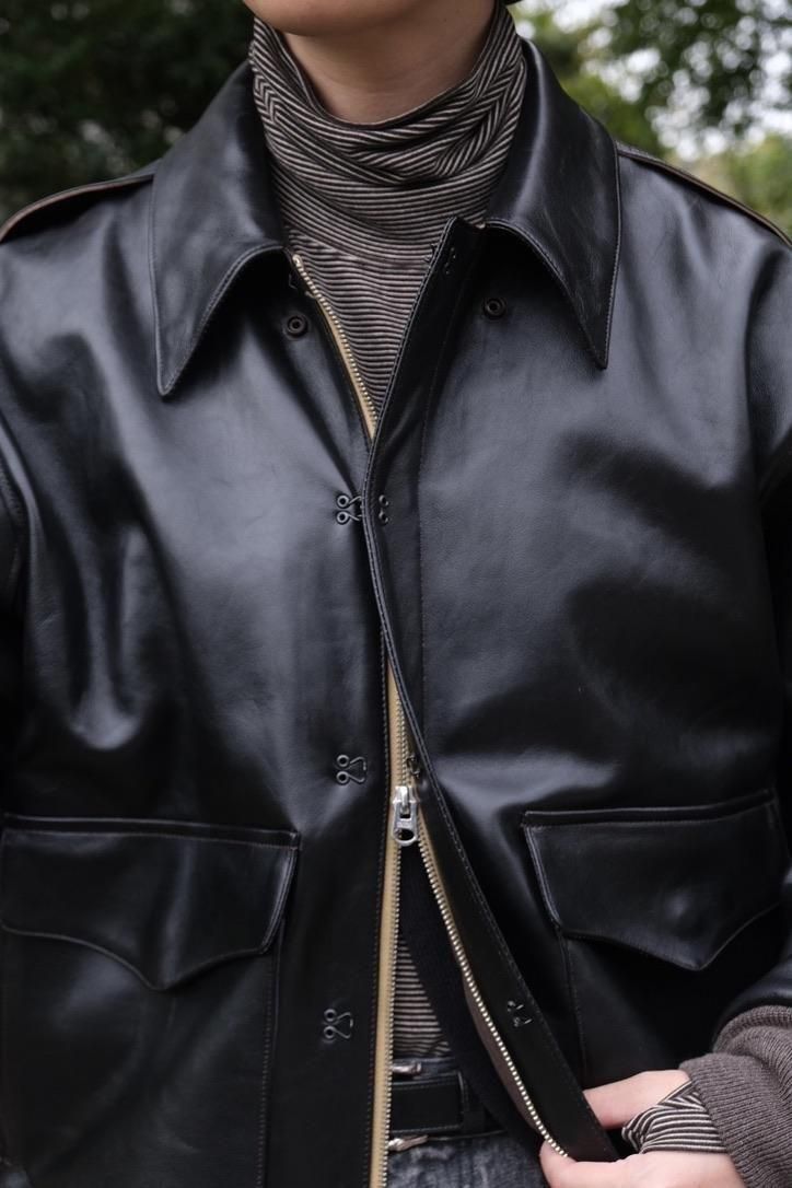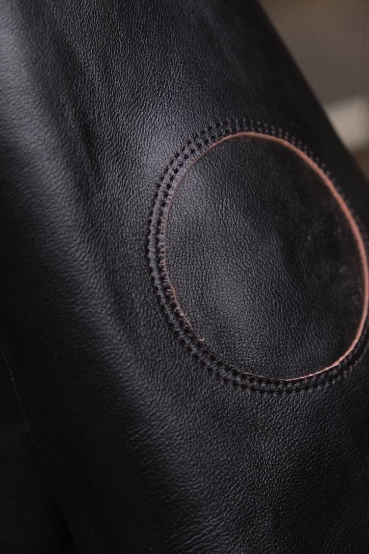 どの時代にあっても、"格好良いもの"というカテゴリーに属するミリタリーデザインのレザージャケット。数多あるそのカテゴリーの中で、我々が目にするナイスネスのレザー選定はまさに一級品。UKの茶芯ラムに黒の顔料を乗せ仕上げた、まさにオトコ顔な今作のA-2ジャケットはレザー自体の経年変化の上に、銀面が割れた先の黒と茶のコントラストまで考え尽くしたステッチワークや錆加工のボタンを乗せ、兎に角とことんやっている。当たり前のように、こだわったオリジナルテキスタイルの裏地やN N刺繍など、やりきっているからこそシンプルコーディネートでまとめ上げたい1着だ。