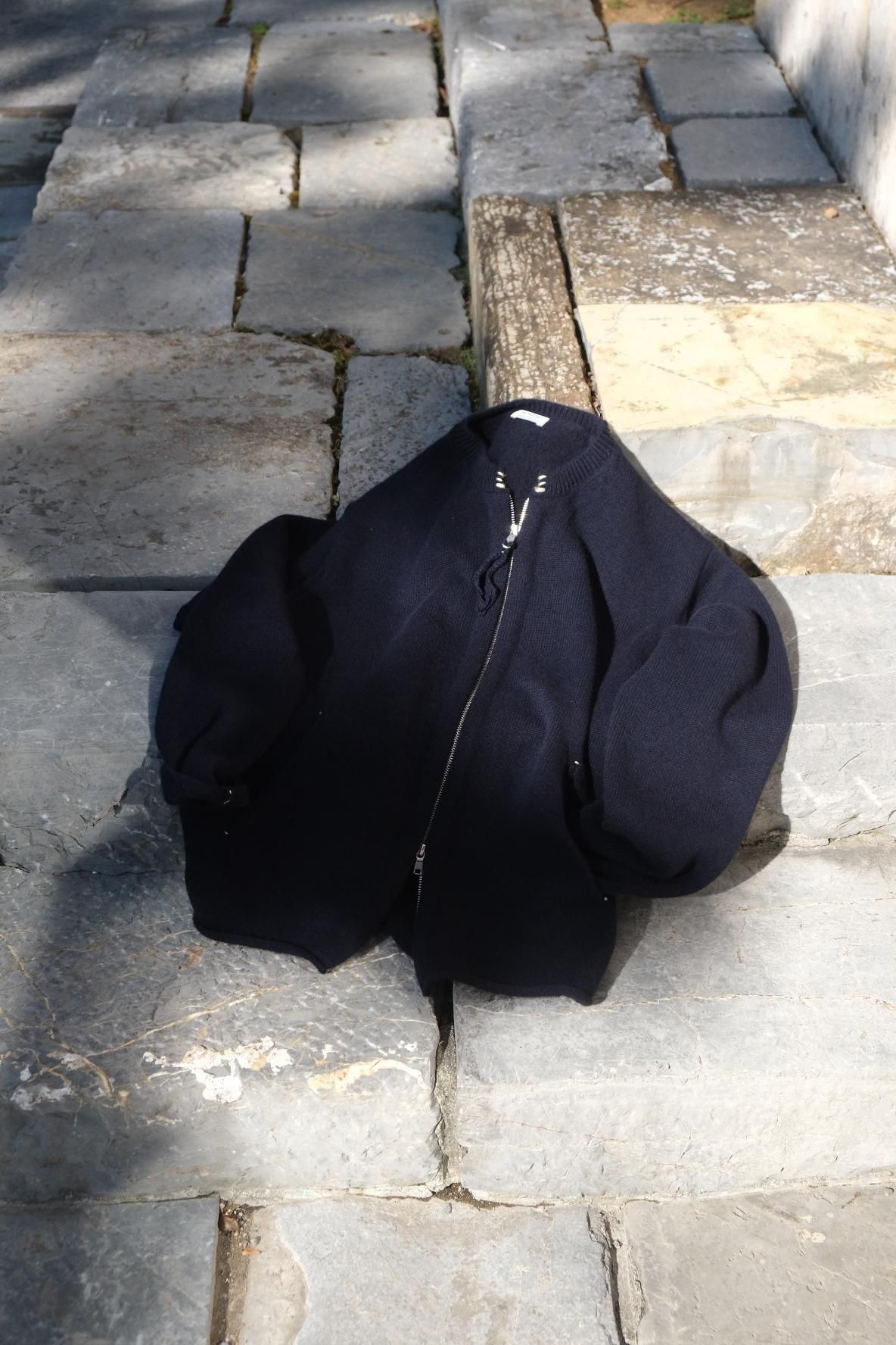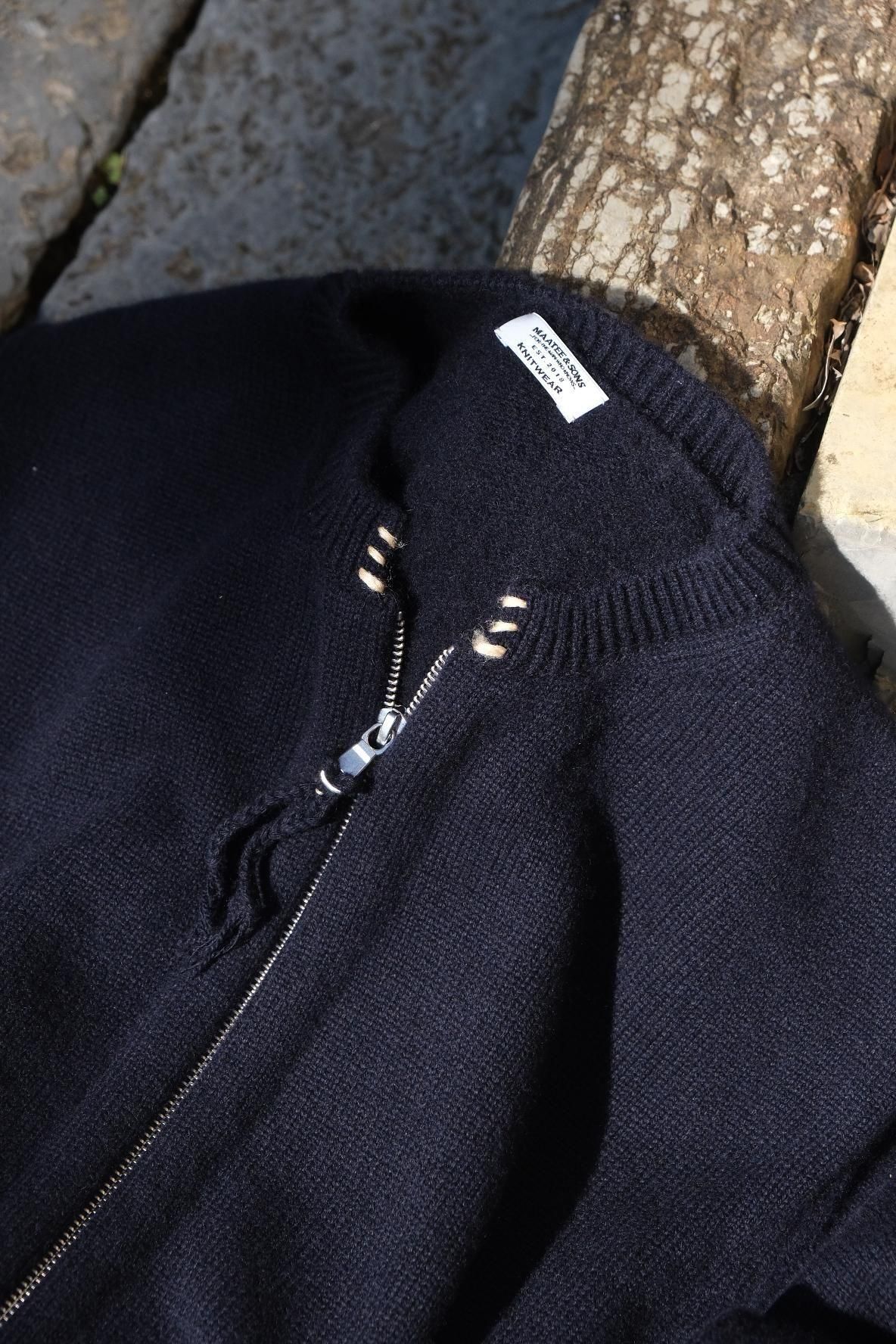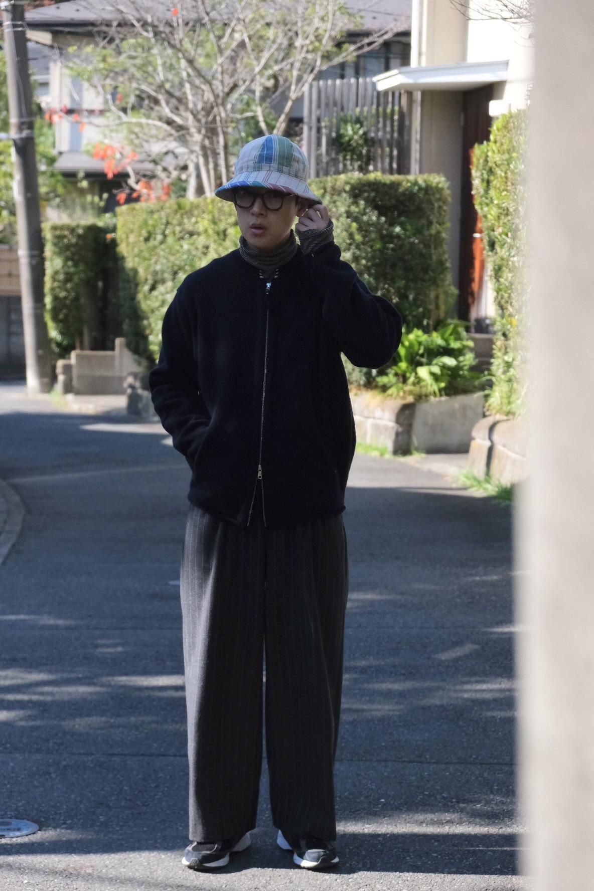 表は起毛させたカシミヤ、裏にはまたまた起毛させた強撚シェットウールを使用した"ひょっとこ"の新作ジップジャケット。強撚した硬いシェットも起毛させる事でシャリヌメを表現し肌あたりは何も気にならない作りよう。マーティらしさ全開の拘りっぷりで冬の代名詞となった"ひょっとこ"をアップデートしてみた松村さんの心意気にファンは注目したい。ナチュラルで柔らかなタッチは、全てを受け入れてくれる懐の深さを兼ね備える。