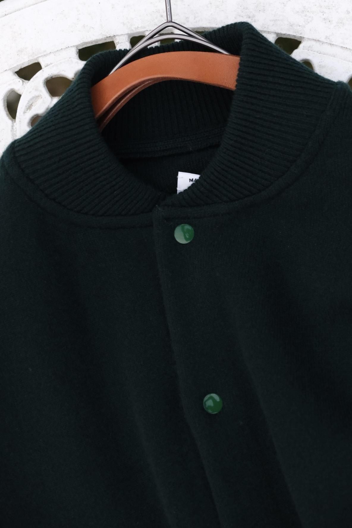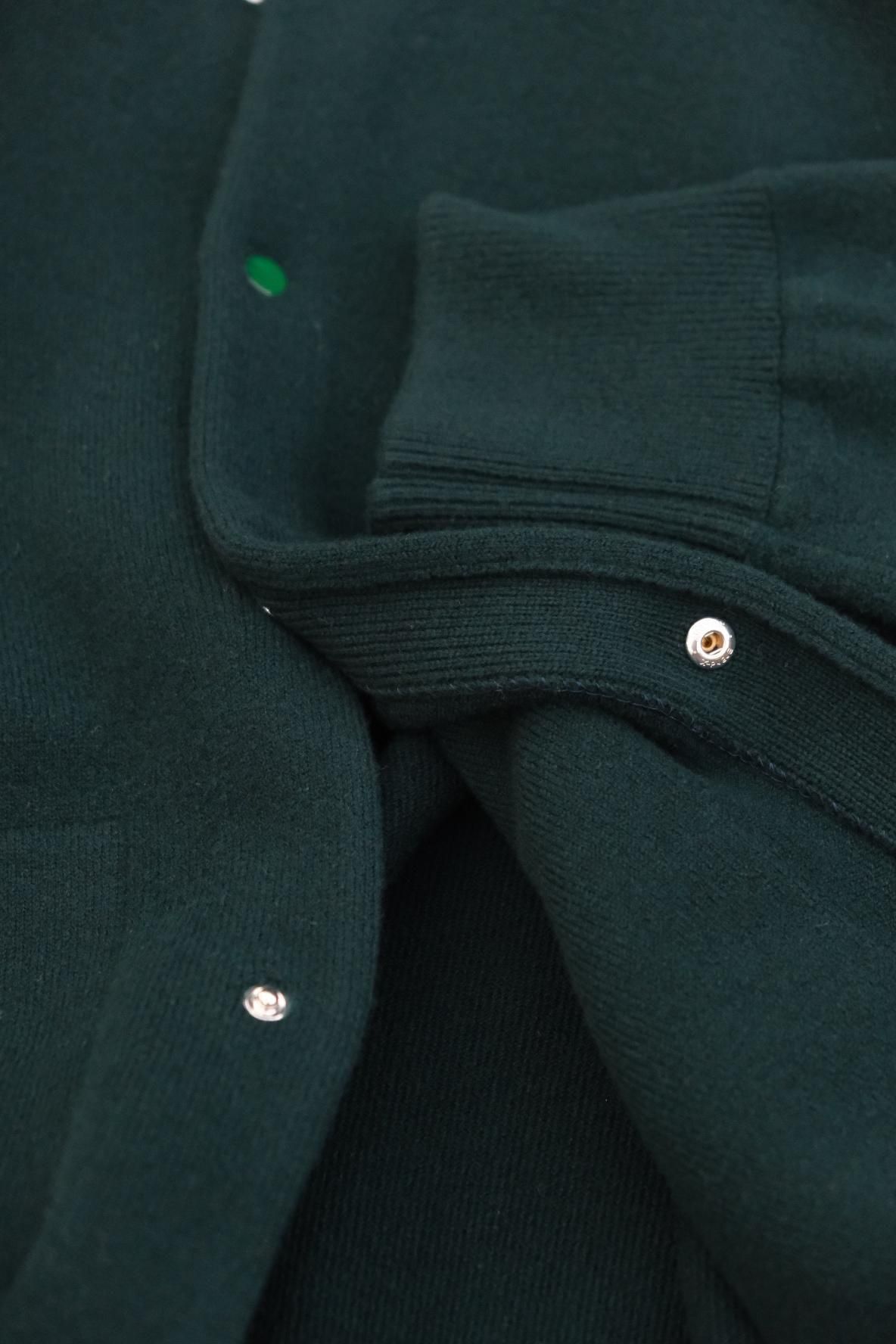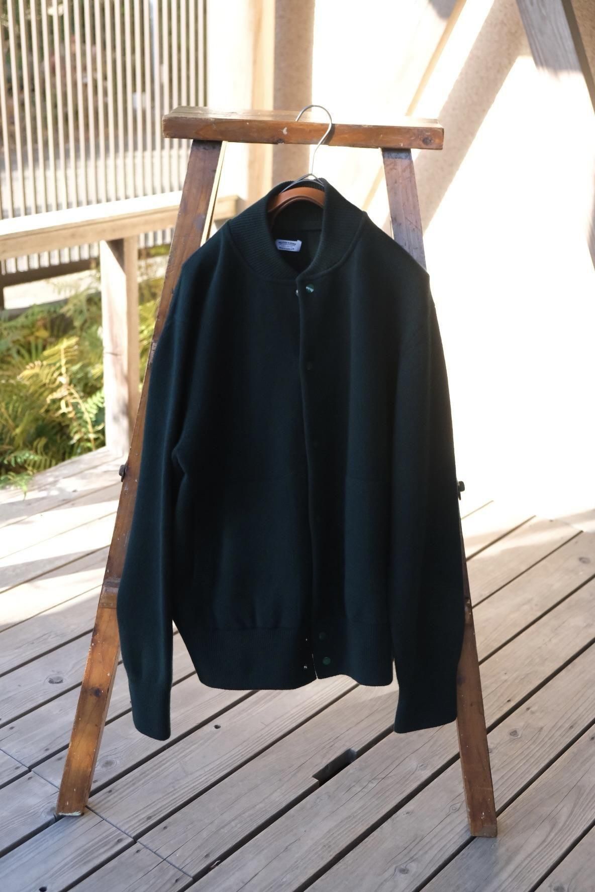 上質で保温性の高さに優れたウールに強度を持たせるナイロンをブレンドした素材を圧縮し、素材本来の柔らかさの中にしなやかさを纏わせた新型スナップジャケット。一見するとボンバージャケットのようなツラ構えであるのに、カーディガンとジャケットの長所を良いとこ取った、そんな羽織りもの。伸縮する糸を加え圧縮することで生まれる芯のある程よい硬さを実現するとともに、カシミヤタッチの肌触りとシルクなみの軽さを兼備している。昔懐かしいと感じる某菓子のようなスナップボタンがほんのりとダサく、ジャケットやコートの下からちらちら覗く瞬間にニヤリとするだろう。まずはシャツやスウェットの上からバサっと羽織って、そのえもいえぬ感触を楽しんでほしいところだ。